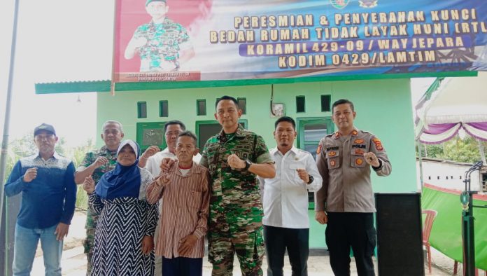 Lampung (Bumi1.com) Kodim 0429/Lamtim melaksanakan peresmian dan penyerahan kunci bedah rumah tidak layak huni (RTLH) bersama Koramil 429-09/Way Jepara bertampat di dusun VI Desa Braja Yekti Kecamatan Braja Selebah Lampung Timur, Kamis (05/01/2023).