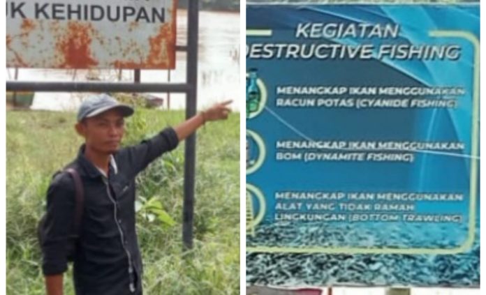 Pasalnya, warga Menggala Rudi Hartono melihat plang himbauan dinas terkait larangan masyarakat tidak mencantumkan larangan menggunakan alat setrum ikan.
