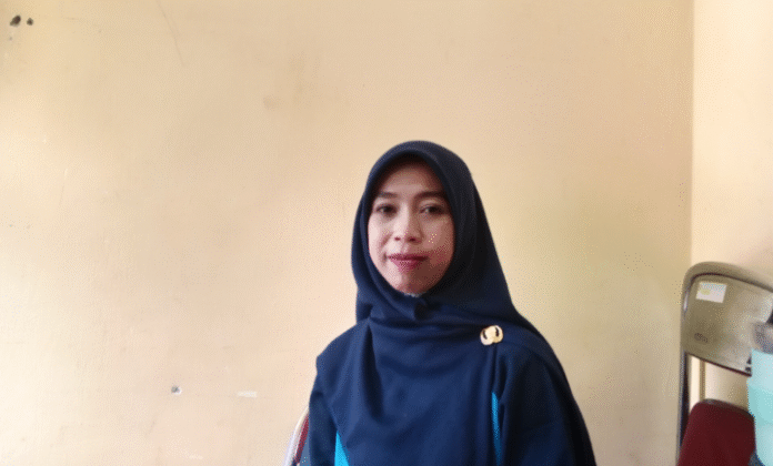Foto pendamping Program Keluarga Harapan (PKH) Srimenanti saat di wawancara adanya warga Desa Srimenanti yang lanusia tidak mendapatkan program dari pemerintah.